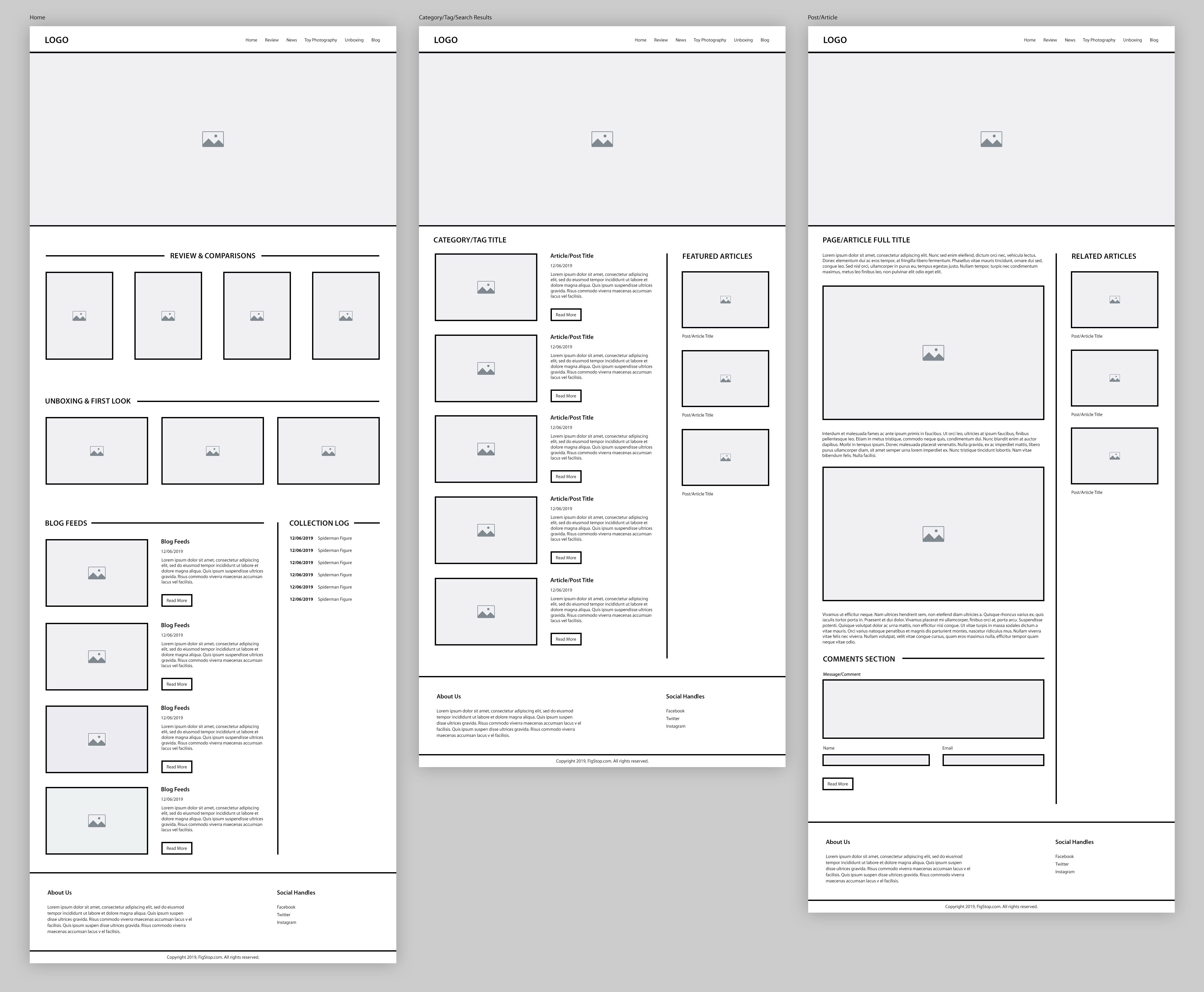 The home page has multiple list component like the “Review”, “Unboxing”, “Blog Feed”, “My Collection” and even “Toy Photography” so to break the monotony, I switched styles to make every one unique, the toy photography being a media heavy category gets its own Instagram style 3×3 component. The my collection section also puts just title and date giving it a list like UX.